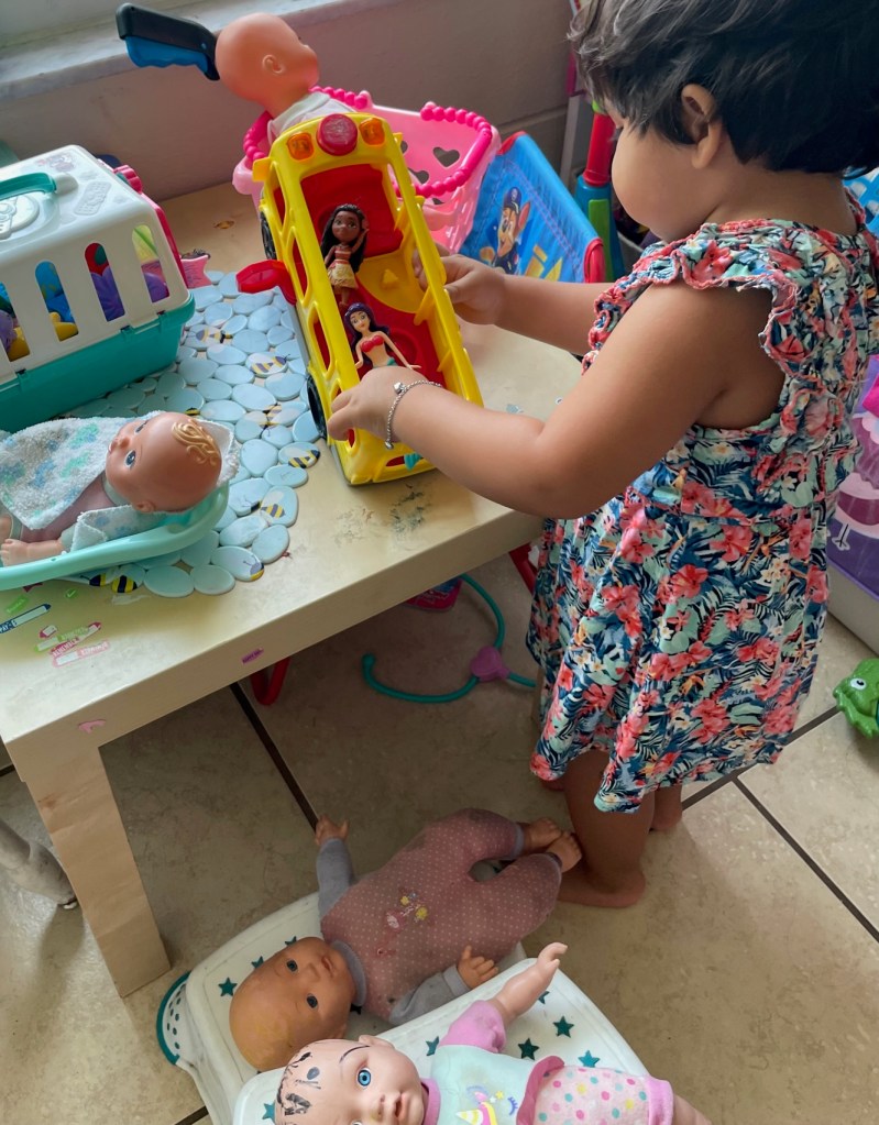 Observé a Kamilita agitada. Iba de un lado a otro cargando sus muñequitos.