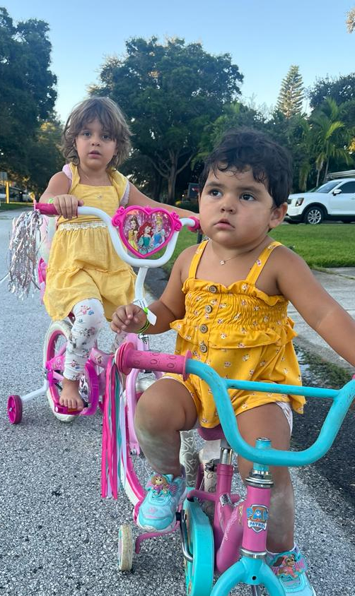 Un poco más tarde llega la madre y juega como una niña con sus pequeñas. Disfrutan ese tiempo con ternura infinita entre libros, cuentos, agua arena y hasta carreras en bicicleta.
