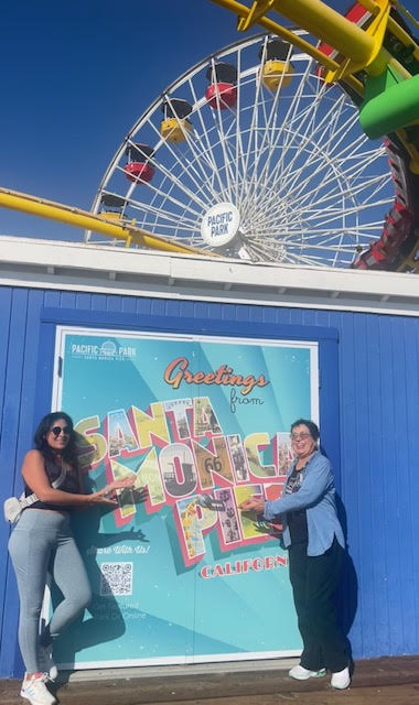 Alli está el muelle, repleto de gente que va y viene con la algarabía de un turismo intenso. que contrasta con la pasividad del paisaje y del mar. Ahi esta también el parque de atracciones con su rueda de la fortuna que funciona con energía solar y el final de la histórica ruta 66, que recorre los Estados Unidos del noreste al suroeste.