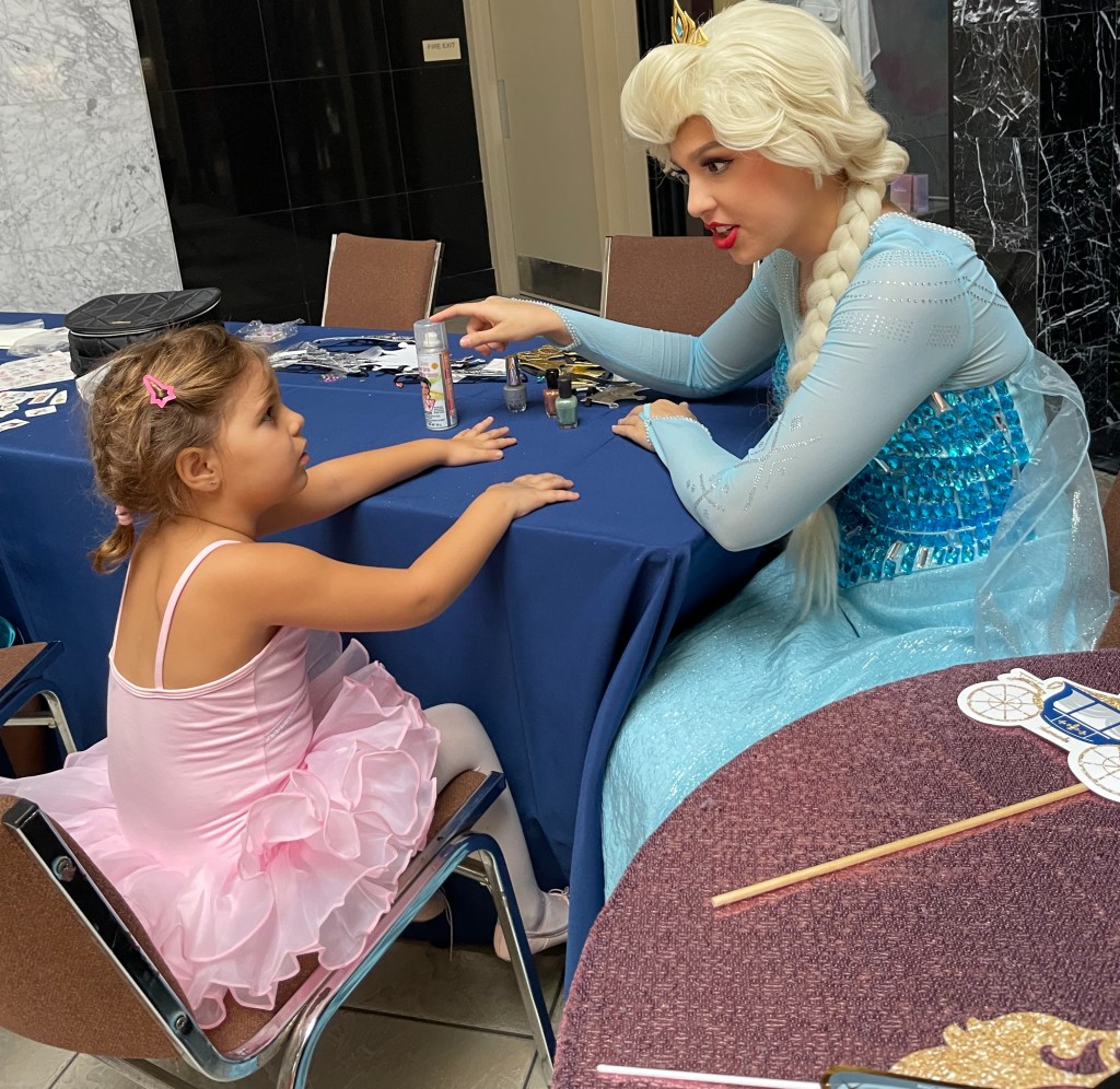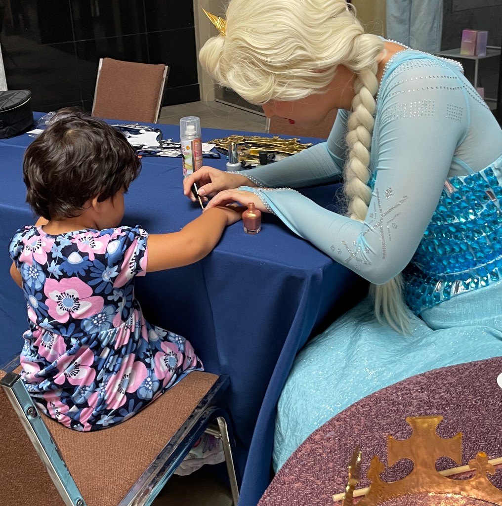 Elsa y Ana, de carne y hueso, estaban allí, en el Centro Comercial, en un escenario muy bien puesto, semejando al hielo y al contenido de aquel cuento infantil. Modelaron, tatuaron, pintaron cabellos, hicieron manicure y conversaron cara a cara con inquietos chiquillos.