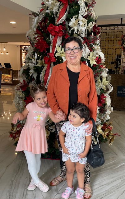 La abuela, Angielisa y Kamila, en sus buenos momentos de fin de año, en Quito.