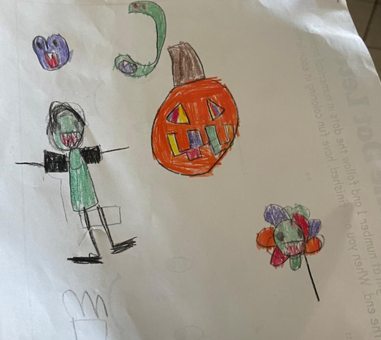 Mira abuelita. Mis dibujos de Haloween. Mira esta soy soy y esta es una flor, un corazón y el arcoiris.