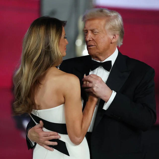 Un espectáculo muy llamativo fue el Baile de Gala, en el que Melania Trump lució su belleza con un hermoso atuendo blanco, diferente al del sombrero que cubrió su cara en la mañana. Ella sonreída y Trump, enamorado, deslizaron sus pasos de baile, al igual que la pareja vicepresidencial y sus familias.