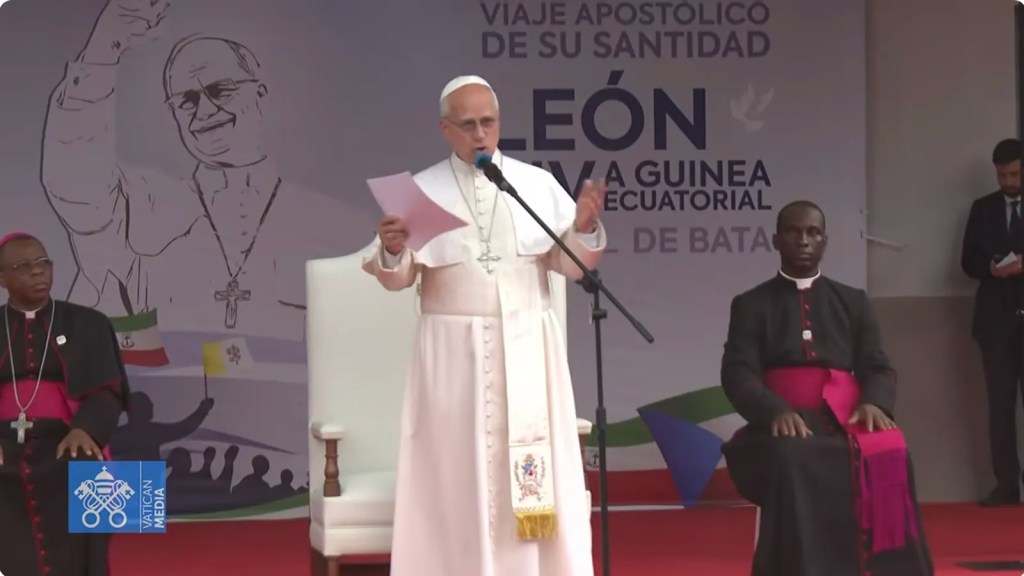 Esa frase fue coreada en el estadio de Bata,en Guinea Ecuatorial, que estuvo abarrotado de jóvenes, que cantaron, bailaron y vibraron con la presencia de León XIV, pese a la torrencial lluvia de aquel día.